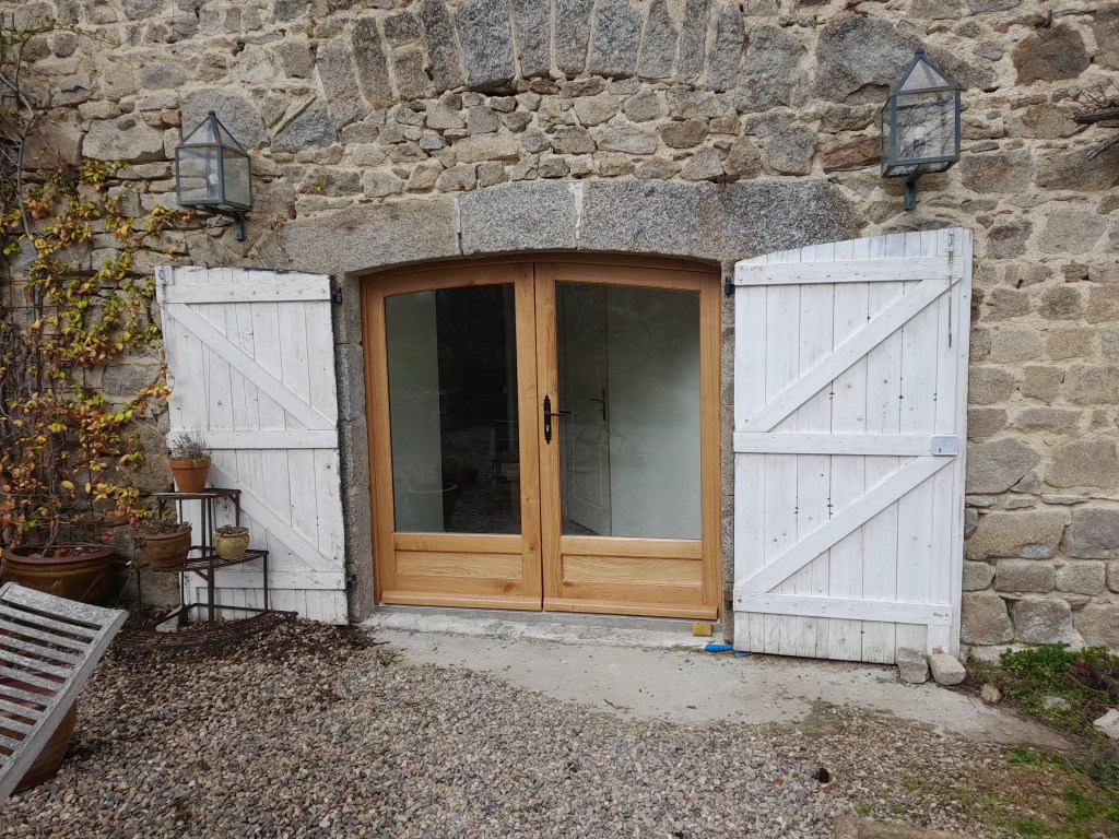 En nu nog iets van een heel andere orde. De gîte in de grange beneden. Die wordt steeds mooier. De afgelopen weken is daar natuurlijk weer veel gedaan. Dat ga ik niet allemaal laten zien nog. Dat komt nog wel ’n keertje voor de zomer, als het af is. Maar dit wil nog even laten zien.