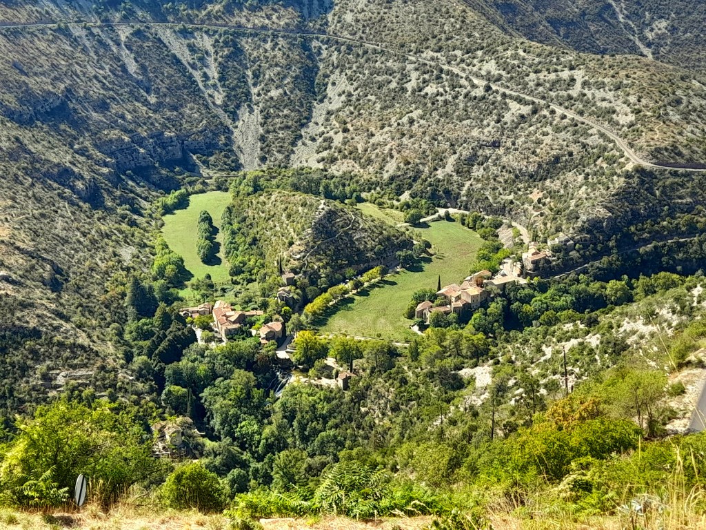 Ja mensen, het werd weer ‘ns tijd. Om op pad te gaan. Dit verhaal gaat niet over Le Malcheptel, maar over mij Renée, en mijn pad. Le Chemin de St Guilhem. St Guilhem le Désert is een klein, middeleeuws (verschrikkelijk toeristisch weet ik nu) dorp wat een uur ten noorden van Montpellier ligt in het zuiden van Frankrijk. Ik ben erheen gelopen vanaf Aumont Aubrac. Zoek maar op waar dat ligt als je dat wilt weten, een uur of 2 ten zuiden van Clermont Ferrand ofzo. 259 km heb ik gelopen in 13 dagen. 6600 meter in totaal omhoog en 7000 naar beneden. On-ge-loof-e-lijk voor ’n oud wijf als ik. Mét een kunstheup, ha, ha. Ik wist dat het een uitdaging zou zijn en dat was het ook. Liep ik vorig jaar een andere chemin in september fluitend en zwevend, dit jaar kwam ik mezelf vaker tegen zoals dat heet. Maar man, man was is Frankrijk toch verschrikkelijk mooi en wijds.