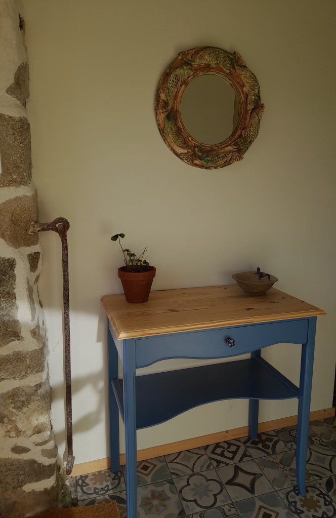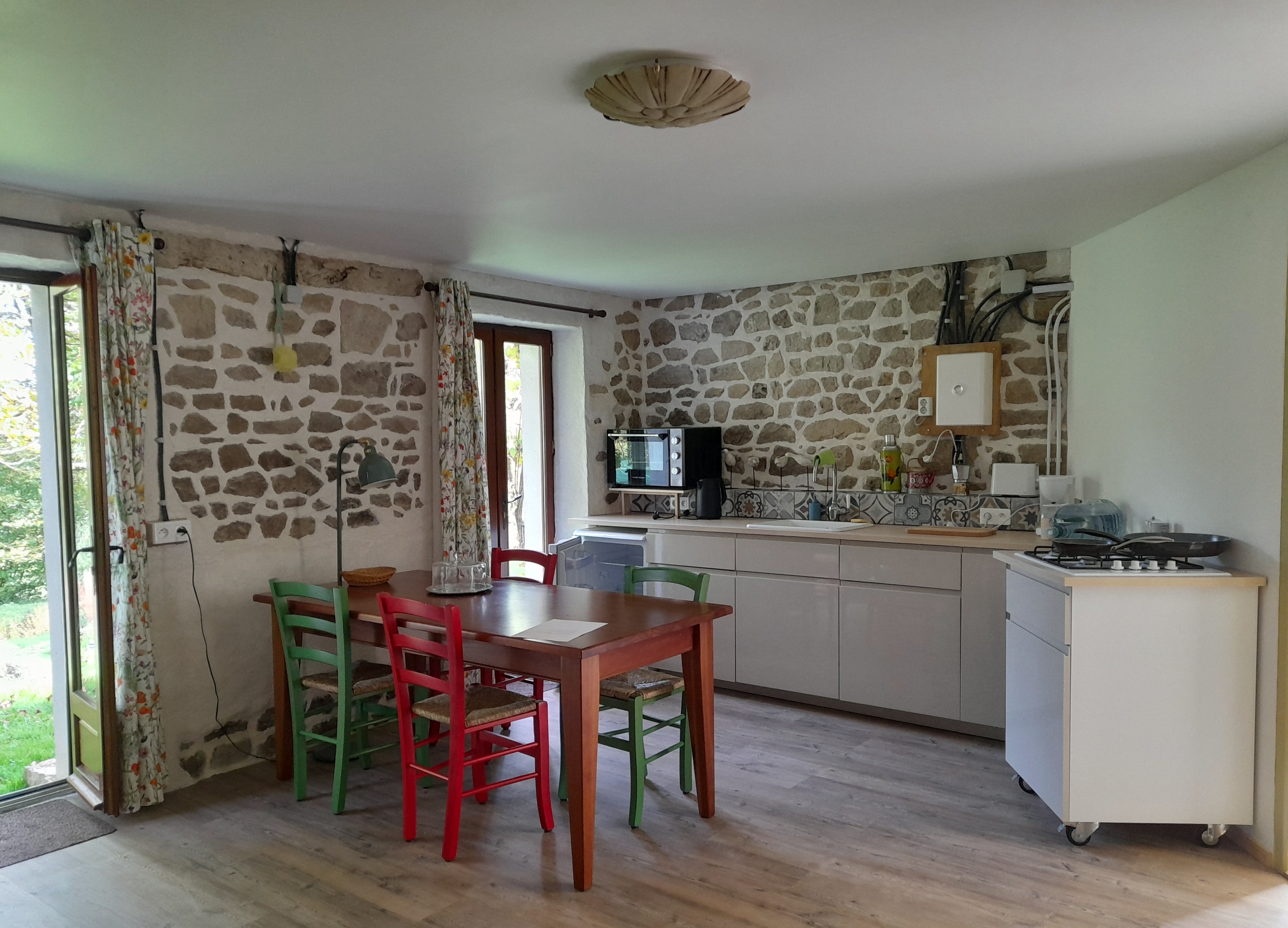 Ja, sinds de zomer van 204 is onze gîte klaar! We hebben er een jaar of 3 over gedaan om van de onderste etage van onze grange (schuur), waar vroeger koeien stonden en waar nog zand lag toen we er kwamen wonen, een volledig uitgerust huis te maken. Een gîte dus, want we zijn in Frankrijk en we gaan er niet in wonen, het is bedoeld om familie en vrienden in te herbergen als ze bij ons komen.